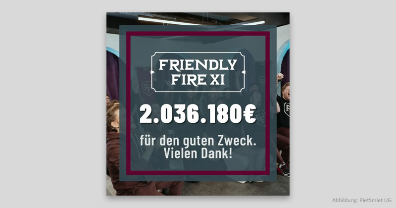 2.036.180 € – so lautet das vorläufige amtliche Spenden-Endergebnis von Friendly Fire 11.