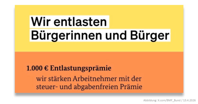 Was das Ministerium von Vizekanzler Lars Klingbeil (SPD) geflissentlich unterschlägt: Diese ‚Entlastungsprämie‘ sollen / können / dürfen die Arbeitgeber zahlen. Einen Anspruch gibt es nicht. Zur Gegenfinanzierung wird die Tabaksteuer erhöht.